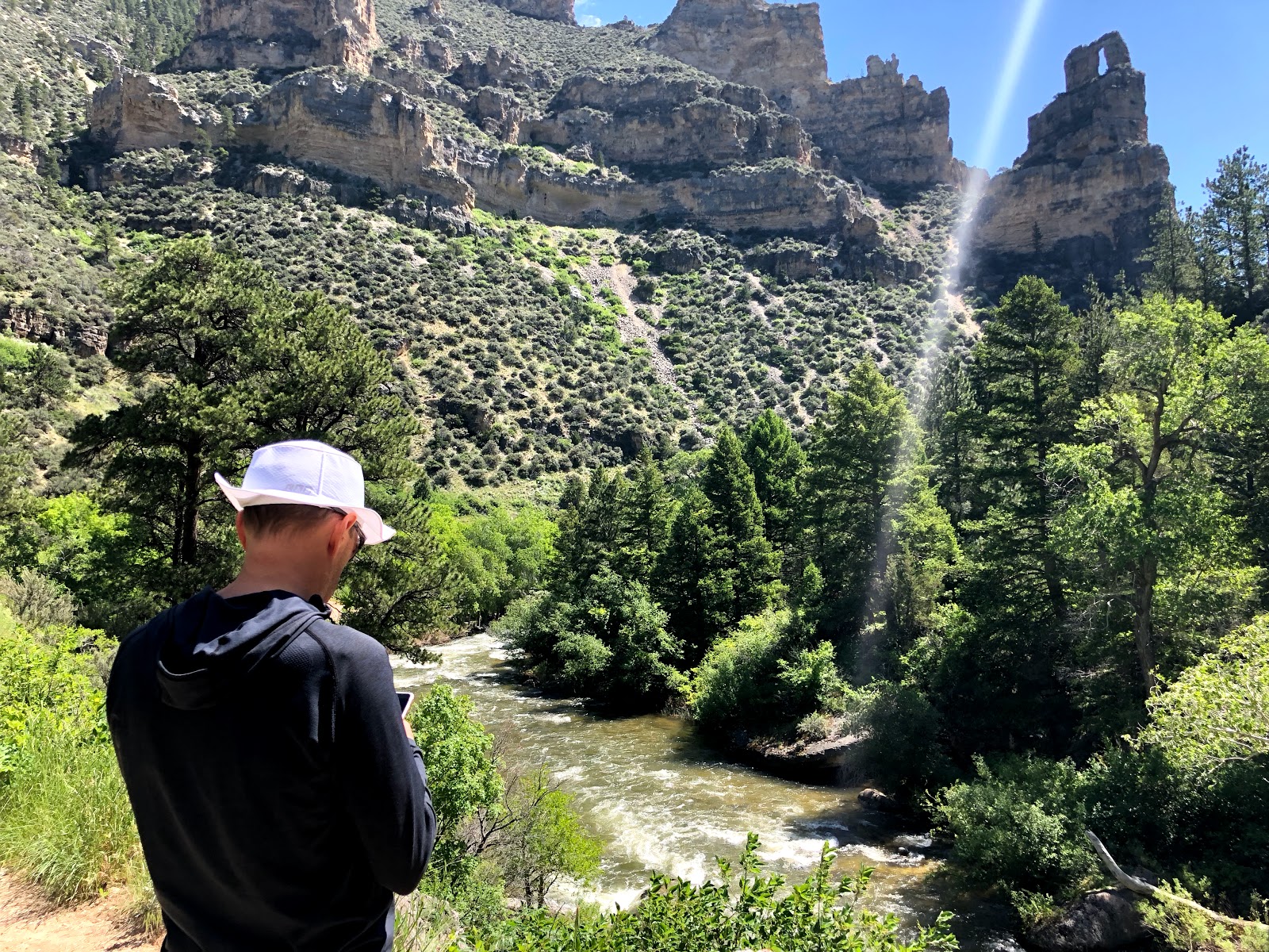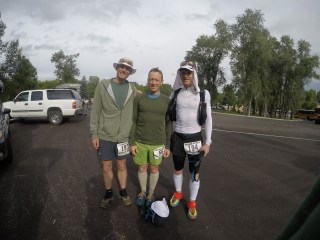 Thursday after a great streak-maintaining 5 mile run, partially with Pete, along a trail in Sheridan we had some hotel breakfast (bagels, waffles, yogurt) and then headed to the race start to check it out. It was slightly cooler but still cloudless and hot. We chatted with one of the race volunteers about the course and he said, with a smile, it should be dry barring rain and told us to dress warmly for Jaws given how cold it could be up there. We then drove the few miles down to the finish in Dayton. Shawn, who ran the race last year, warned me that this road was long on race day coming at the very end. It seemed innocuous enough in the car. We drove into the park where the race finished and saw the finish line. We chatted with another runner there, Aaron, who had run it 5 times previously. He also said the road part sucked. Pete and I debated how much we would hate this section and I came down firmly on the side of potentially misery.