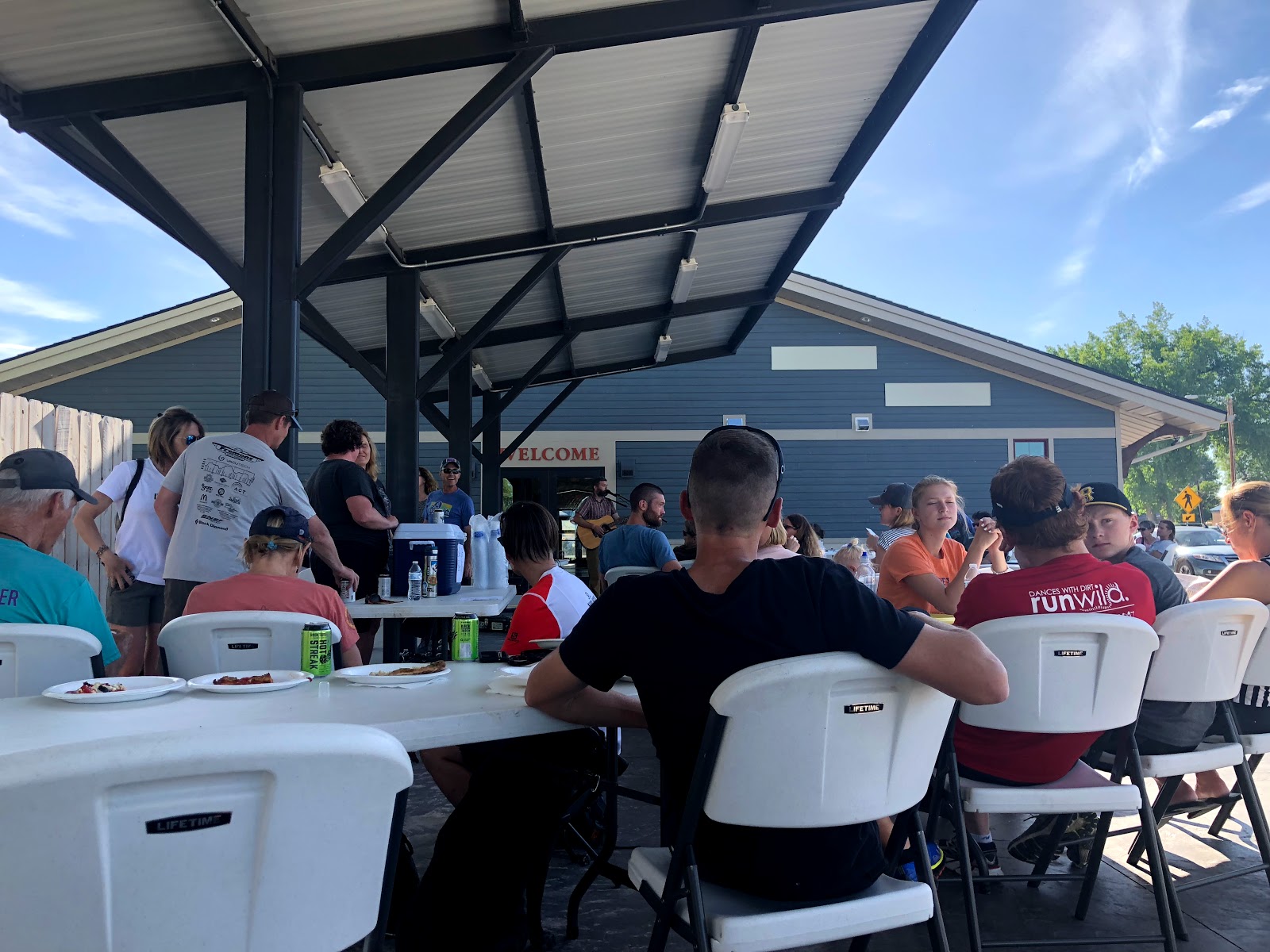 We walked around town that first day in the oppressive sun. There are plenty of stores there to get stuff to prep for the race. The race directors run a sporting goods store and shoe store on Main Street and they are really well stocked. There are two breweries in town but neither serve food instead relying on food trucks parked nearby. We had Mexican for lunch which was fine. For dinner we went to a talk by Jennifer Phar Davis in Dayton and ate Pizza from a food truck there.