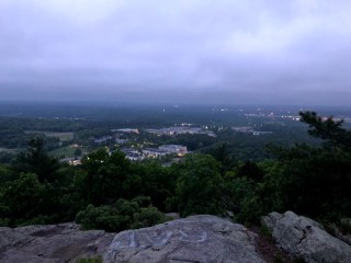 I ran about half of the way back to Foot Bridge by myself. It had started to rain lightly at around 11:30 pm and this continued for several hours. It was dark and there were increasingly few people coming up. The course markings were glow sticks and I found that I got frustrated with these. I could see them in my peripheral vision but when I shone my headlamp at them, they became less visible. Upon reflection, it seems silly to have been frustrated by this as I was not having any way-finding issues, I just wish they had used more reflective tape – even on the glow sticks. I was passed by a runner from Memphis who had no poles. He fell several times as he passed me and commented how much he wished he had poles. I was making my way more slowly and was embarrassed by how much slower I was on downhills. I ran alone again for a short while and then saw the guy from Memphis ahead. He had slowed to wait for me and said that he was sick of having to concentrate to much and wanted to run behind me. This was great as I became more focused on picking up the pace. We chatted a bit was we made out way down past Cathedral Rock and into Foot Bridge. This is mile 66 and I arrived at 3:16 am, 19 hours into the race. I was about 40 mins behind my middle guess on pacing.