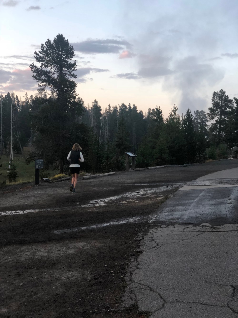 The following day, Jenn and I ran around the geyser basin by Old Faithful on the deserted boardwalk. My legs were generally unhappy and my heartrate was extra high despite slow running and my adductor hurt but at least I felt like I was back to running. Running 10 min miles.